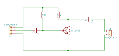 これまで使ってきた gEDA と比較するため, NPN トランジスタの固定バイア ス回路の基板を作ることにし,KiCad 上で回路図を入力しました.